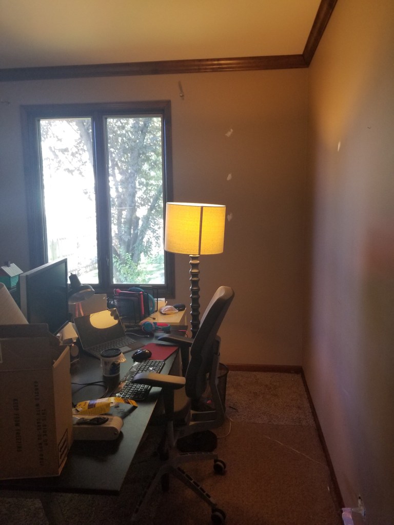Five years ago, when we purchased this house, the office was a dark, muddy brown painted room. A west facing room with little lighting and dingy, worn-out carpet. While the carpet was replaced with all of the other carpeting on the 1st and 2nd flooring, I still had my work cut out for me.