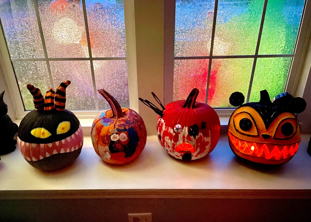October brings all kinds of beloved traditions, and one of our favorites around here is pumpkin carving. We love carving and decorating our pumpkins into some truly interesting characters, and we often use every item in our craft supply bin to transform them! My kids especially love this tradition, and they try to out-do themselves every year.
