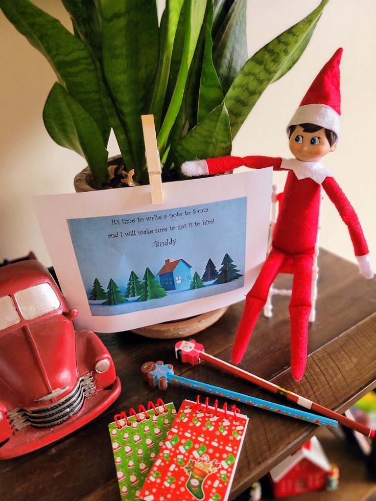 My kids already started their letter to him this morning. I’ll plan on having them leave the notes with the Elf before they go to bed tonight. Just remember to make sure the Elf does indeed “take the notes to the North Pole”!