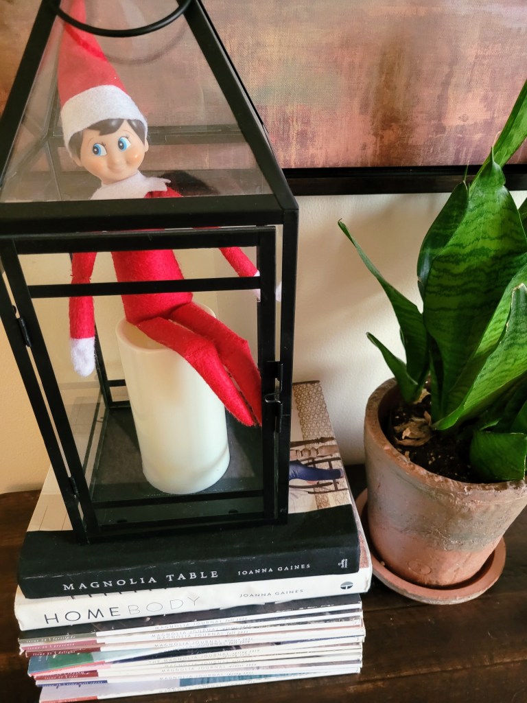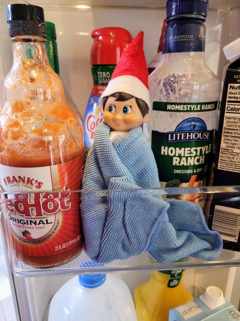 We are in the final stretch folks! I love the magic of the Elf but man, I could use a break! So today, I am just going to share some of Buddy’s hiding spots when I just wasn’t really wanting to do much. Hopefully, these will give you some ideas for these final couple of days.