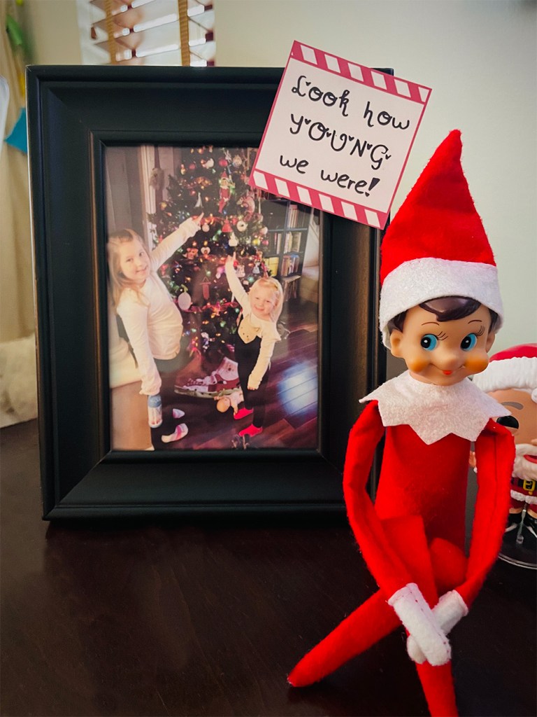 This idea is perfect for those nights you need something quick and easy for your Elf. Print a photo from Christmases past featuring your kids with your Elf, and include the message: “Look how YOUNG we were!”. Almost every kid has heard this phrase when older family members feel nostalgic over photos from years past, so this is a fun twist on that idea.