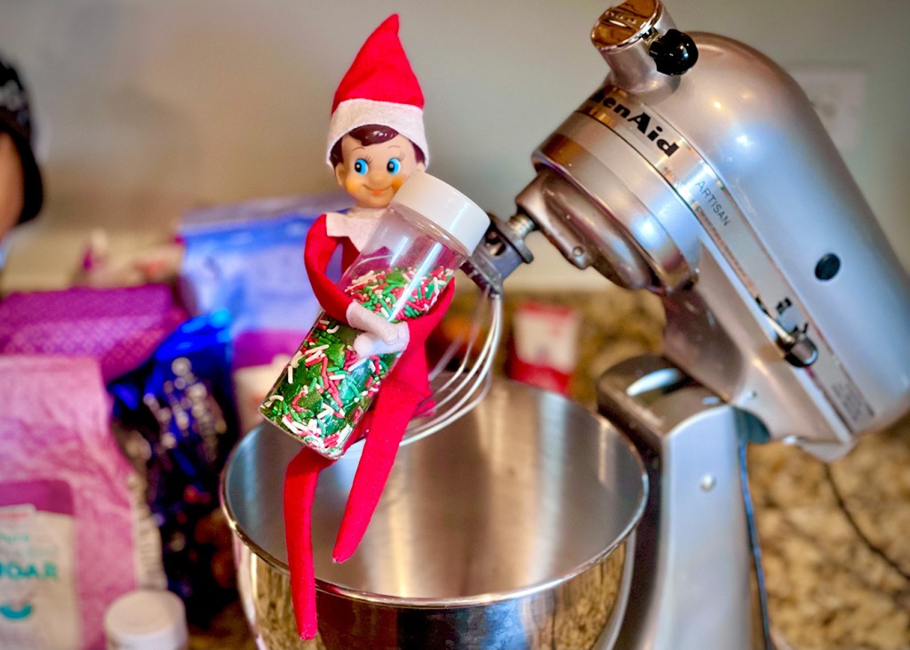 This idea is perfect for those nights you need something quick and easy for your Elf. It’s baking season, so your kitchen mixer might already be out on the counter. Place your Elf in the whisk attachment (we found feet-first worked best!), and you’re done!