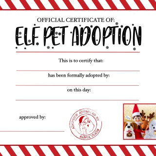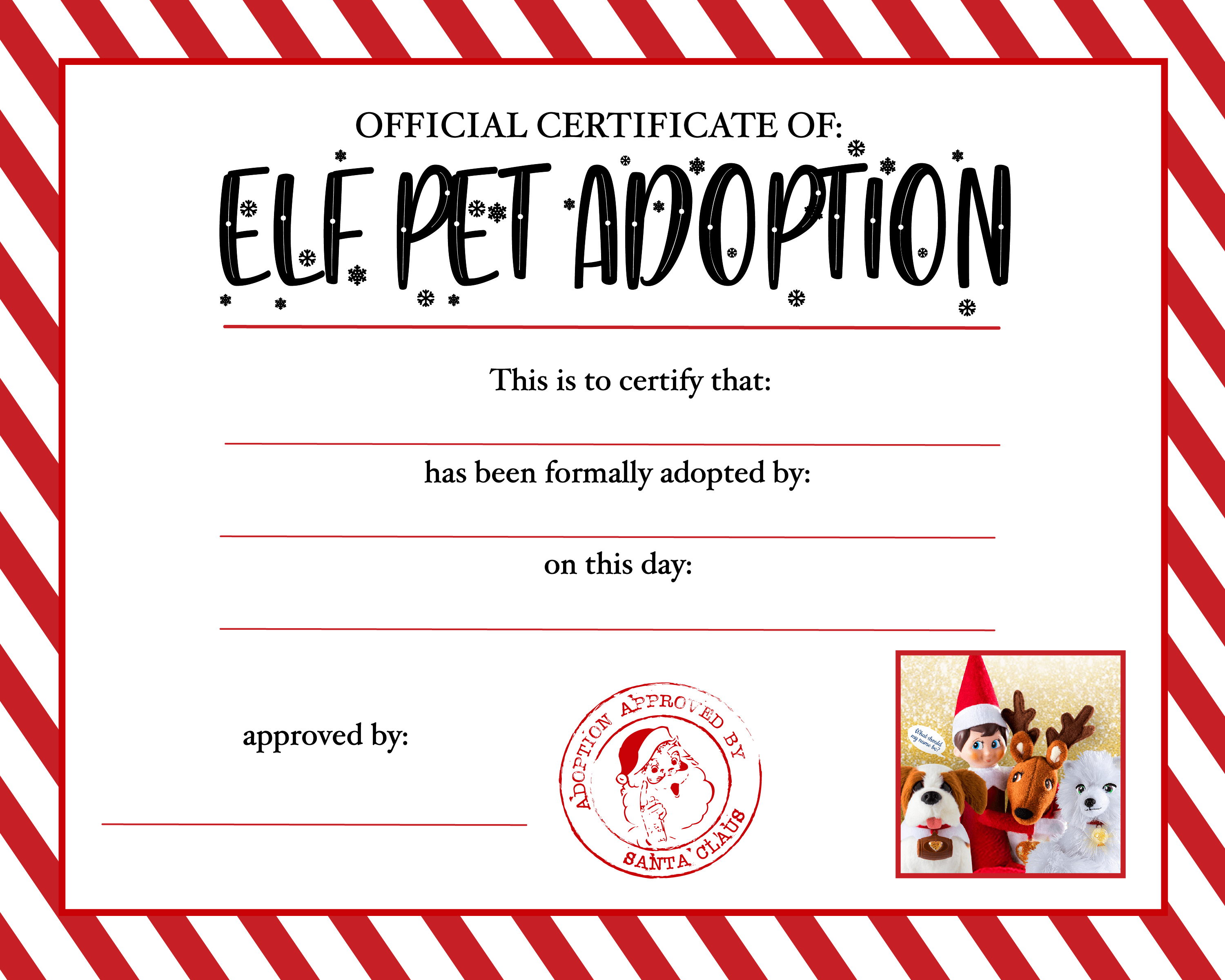 If you are bringing an Elf Pet into your house this year, use the printable adoption certificate below to make it official! Your child will love filling out the details, and you can keep the completed certificate as a keepsake. Place the Elf and his/her pet(s) in a special place for your children to find in the morning. Enjoy!